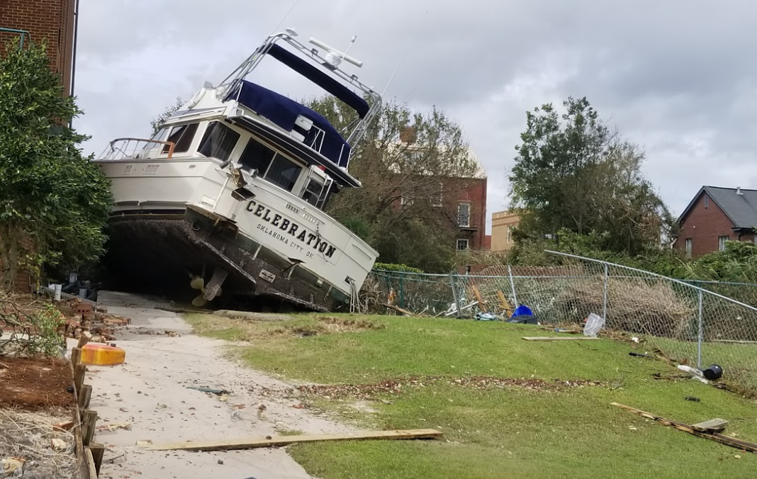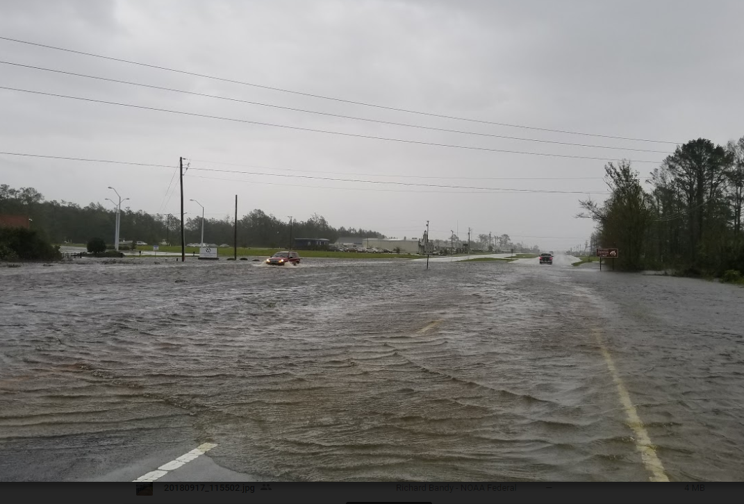 Florence produced extensive wind damage along the North Carolina coast from Cape Lookout, across Carteret, Onslow, Pender and New Hanover counties. Thousands of downed trees caused widespread power outages to nearly all of eastern North Carolina. The historic legacy of Hurricane Florence will be record breaking storm surge of 9 to 13 feet and devastating rainfall of 20 to 30 inches, which produced catastrophic and life-threatening flooding. The hardest hit areas included New Bern, Newport, Belhaven, Oriental, North Topsail Beach and Jacksonville, along with Downeast Carteret County, or basically south of a line from Kinston to Cedar Island. A storm total rainfall of 34.00 inches was reported in Swansboro, while the NWS office in Newport recorded 25.20 inches. Wind gusts of 106 mph were reported at Cape Lookout with 105 mph at Fort Macon.